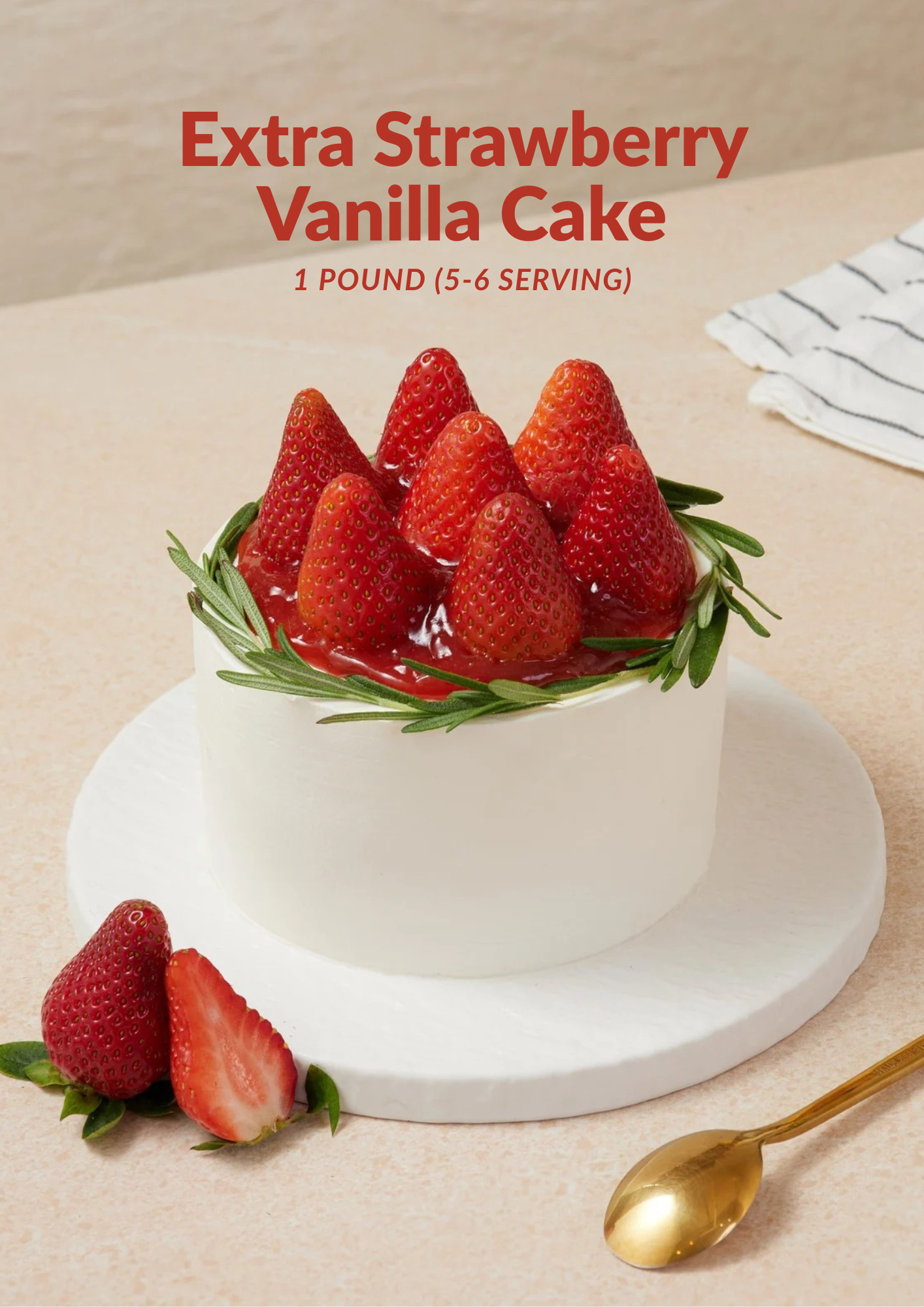 Sweeten your flower gift with our Extra Strawberry Vanilla Cake, a heavenly handcrafted dessert that adds the perfect touch to your special moment. This elegant 1-pound vanilla cake features fluffy layers crowned with fresh, juicy strawberries and garnished with aromatic rosemary, creating an irresistible combination of taste and beauty.